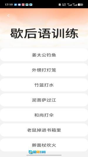 3、语言训练专区设有歇后语专项练习,每日更新10组趣味题目供学习提升。