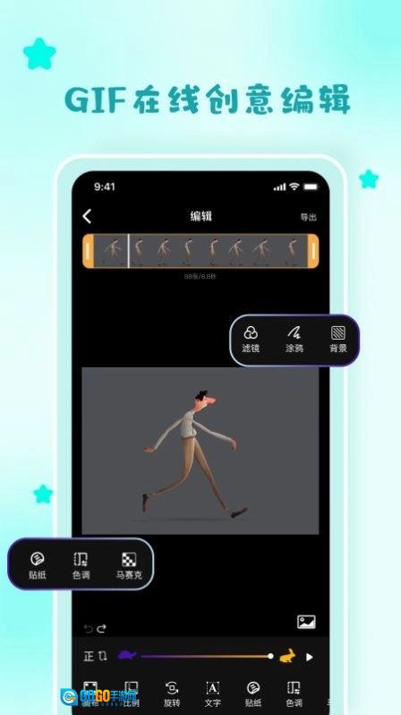 3.gif编辑:具备添加文字、滤镜、调整速度等丰富的编辑功能。