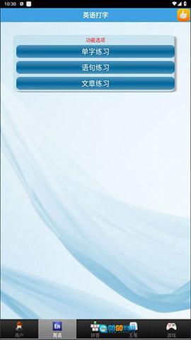 2、在屏幕下方选择英语,可以进入英语打字练习区,提供单字、语句和文章等多种练习模式。