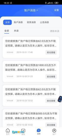 消息中心会实时推送账户异常提醒,像预算不足、物料拒登、账户审核这类关键事件都包含在内。用户能够自定义预警规则,要是消费速度超出设定的阈值,或者转化成本偏离了目标值,系统就会通过推送和短信两种方式进行通知,以此保障营销安全。