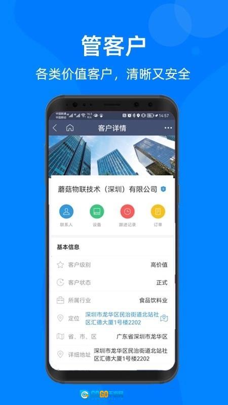 客户管理方面,通过搭建云端客户数据库,把客户的基本信息、商务往来信息、联系人资料、正在使用的设备情况、跟进过程记录以及历史订单数据等进行整合,以此达成客户资源的集中化管理和可视化监控。