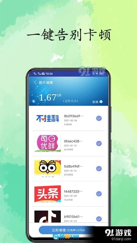 3、手机清理垃圾操作十分便捷,只需一键就能快速扫描出手机里的无用文件;