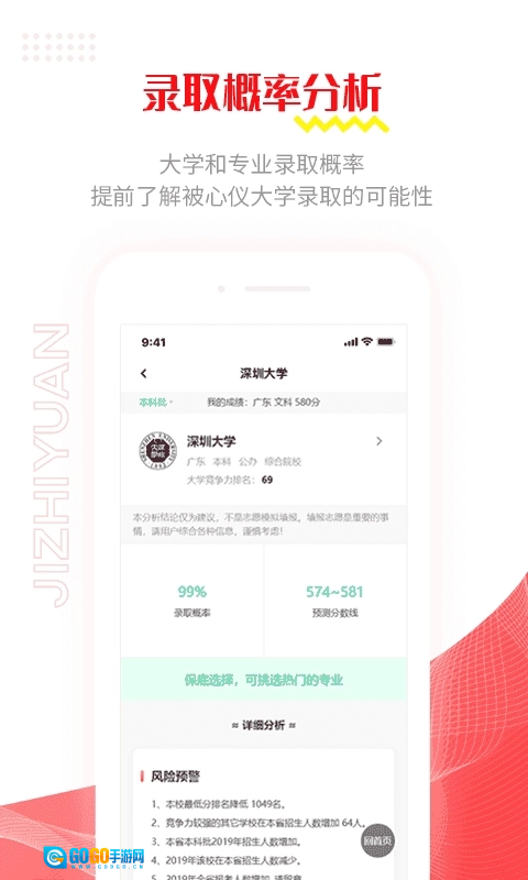 3.对用户自行选定的志愿开展全方位诊断与风险评估,进而提出合理建议。