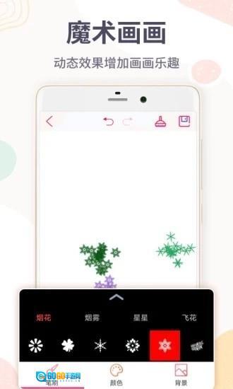五、点击【魔术画画】选项,这里的笔刷都带有强烈的动态效果,能够为图片添加特效