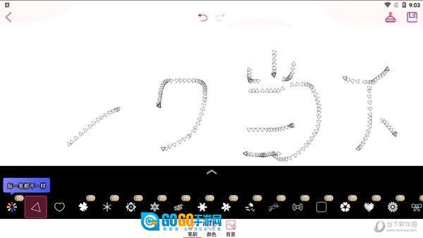 四、挑选一个你喜爱的图案开启教学环节,只需握住笔刷沿着虚线进行描绘就可以了。