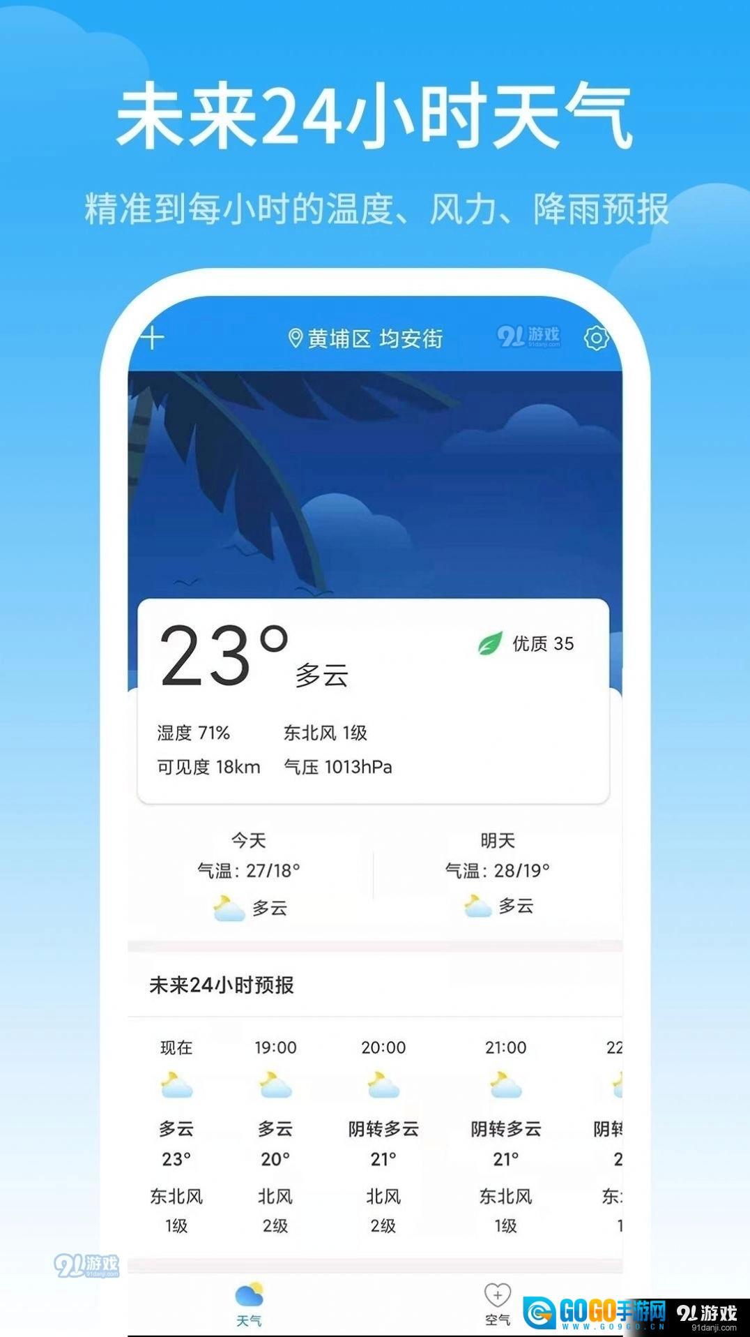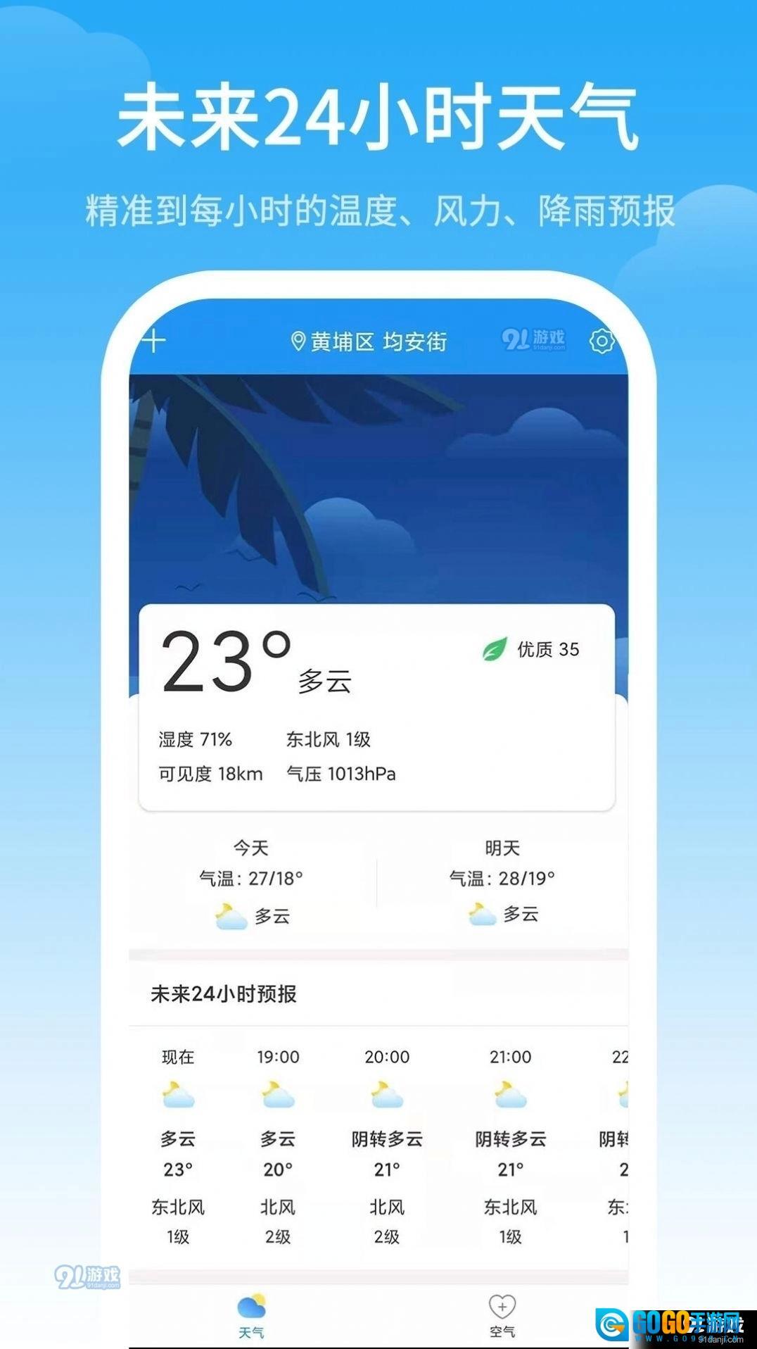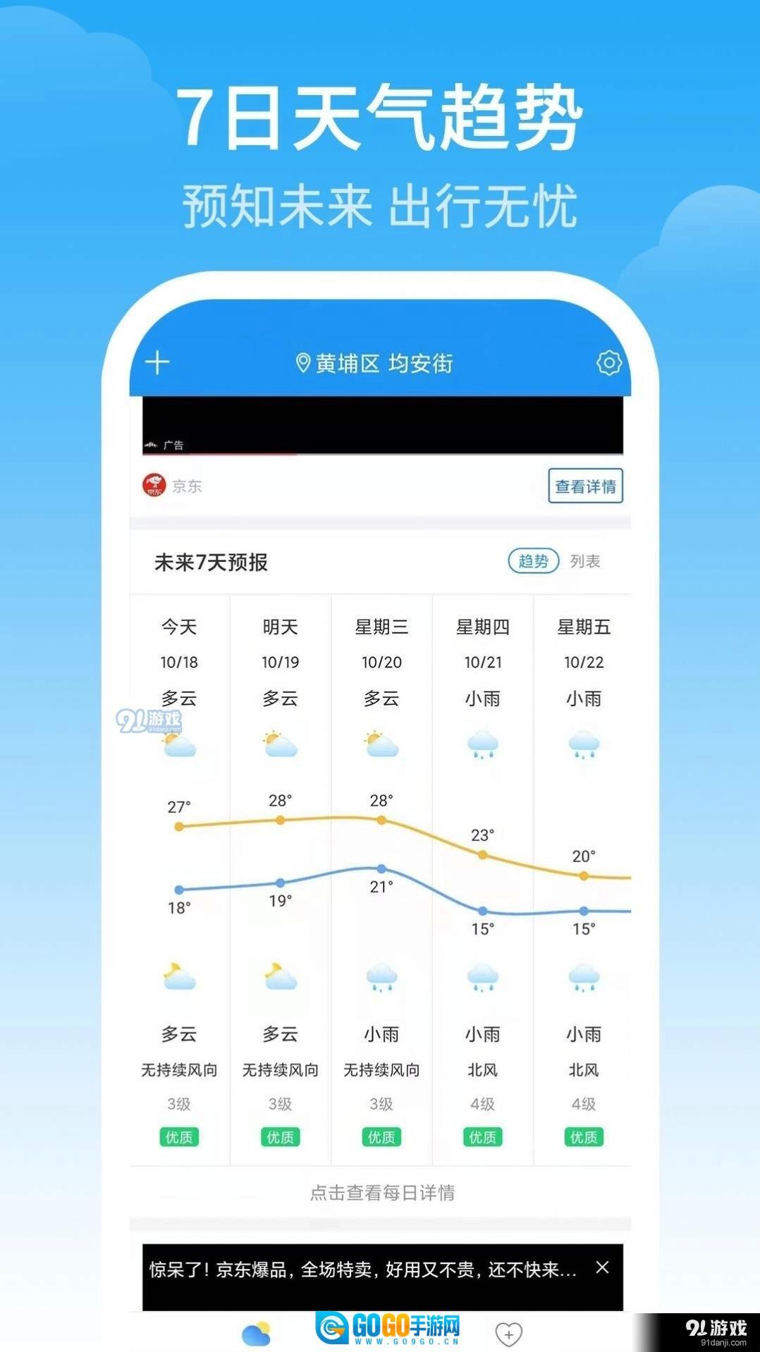 2、这是一款人手必备的手机天气预报软件,所提供的天气信息均来自权威渠道,支持全国各地区用户使用。