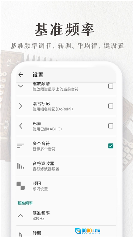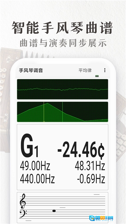 全乐器调音支持:除手风琴外,钢琴调音功能可覆盖88个标准音高,还支持自定义音律,能够满足不同风格曲目的需求。