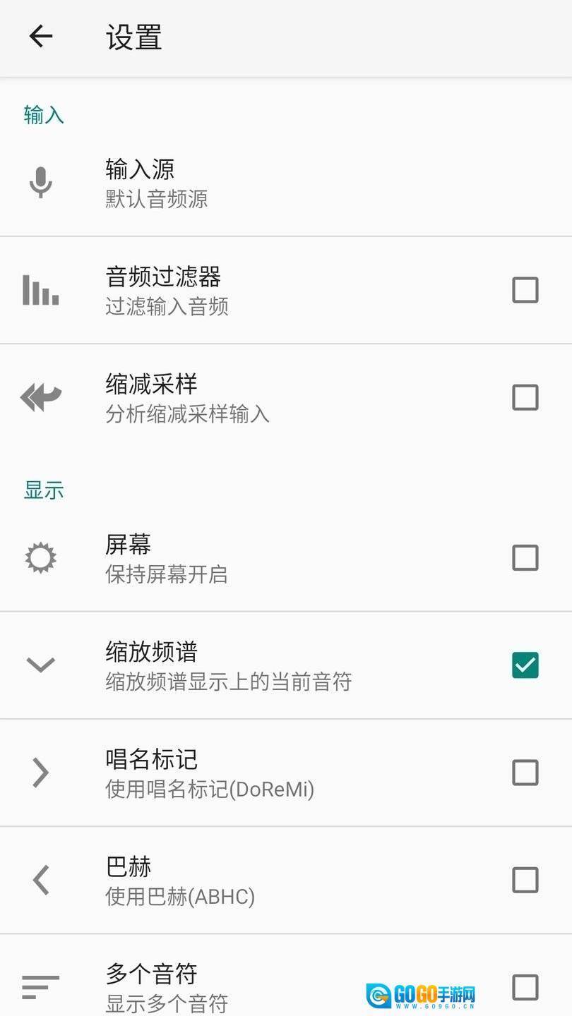 演奏单个音符,观察屏幕显示的音高提示。