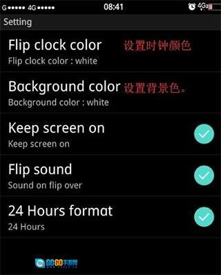 3、设置中第一项为设置时钟颜色,第二项为设置背景色。