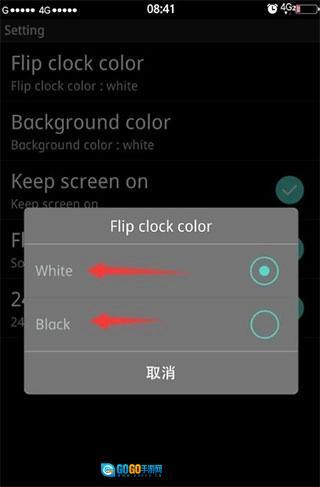 4、时钟颜色与背景色的设置选项均包含两种颜色,分别是黑色(black)和白色(white),点击对应选项即可完成颜色更改,其中黑色通常更受青睐。