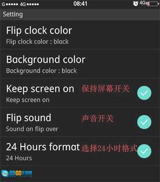 5、其他三项分别是设置保持屏幕开关、声音开关和选择24小时格式,具体如下图所示: