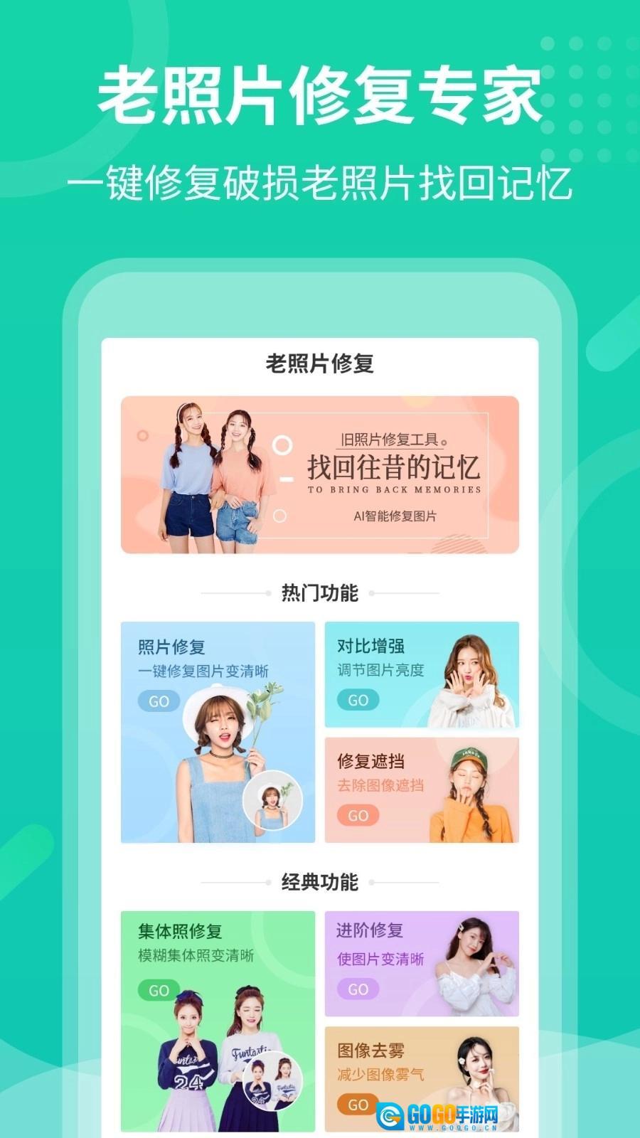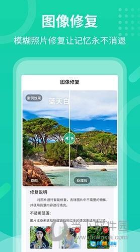 1、能够完成多种类型照片的修复工作,只需一键操作就能让照片呈现出现代质感;