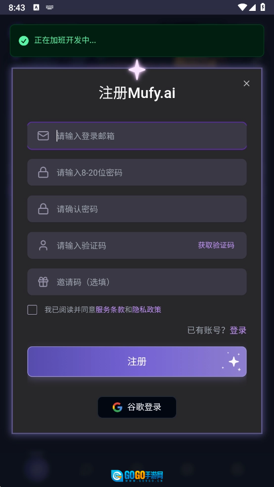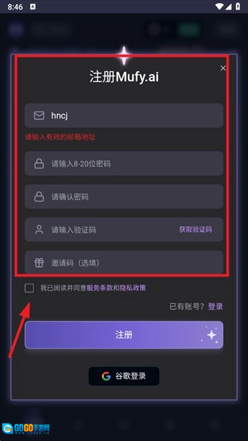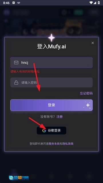 输入邮箱和密码点击登录,还可以使用谷歌账号登录