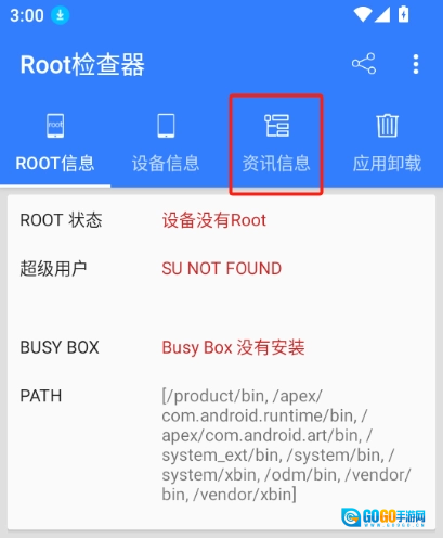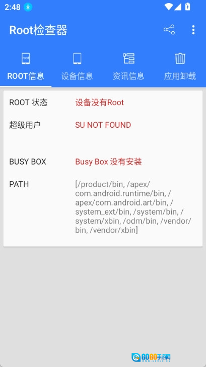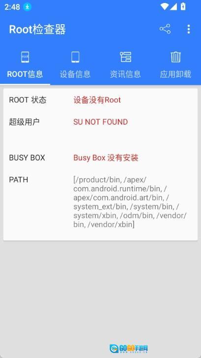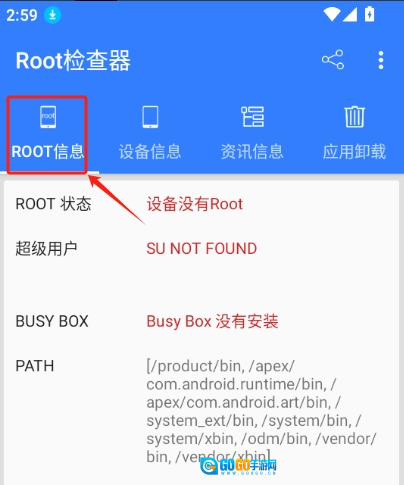 1.root信息查询:支持查询root状态、超级用户情况、busybox是否已安装以及path路径信息