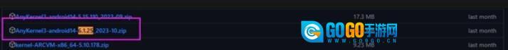 1、首先在GitHub上找到与你设备内核版本一致的AnyKernel3包。例如,小米14Pro的内核版本是6.1.25-android14,就需要找版本相同且名称以AnyKernel3开头的包。