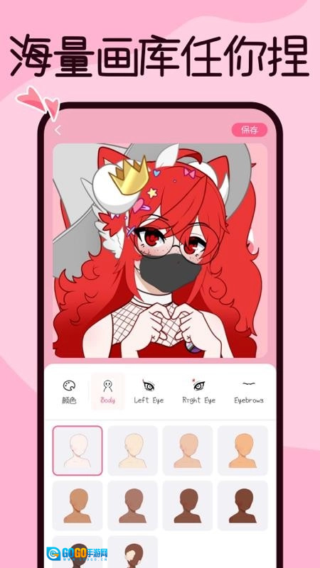 3、操作逻辑简洁直观,配件分类清晰明了,通过拖拽和点击就能完成调整,新手也能快速上手,不需要具备专业绘画基础。