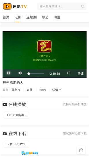 2、速影TV配备高清、超清等多种图像质量选择,能够契合不同用户观看电影的各类需求。