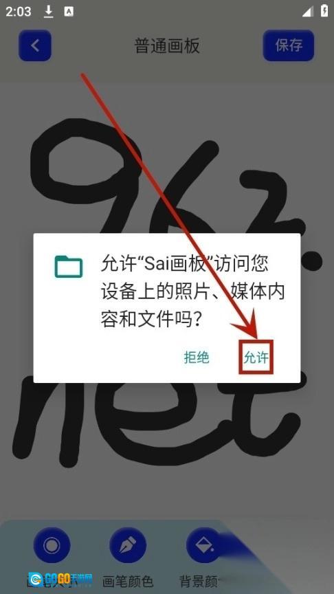 安装并打开sai画板后,点击【同意】按钮来授予相应权限。