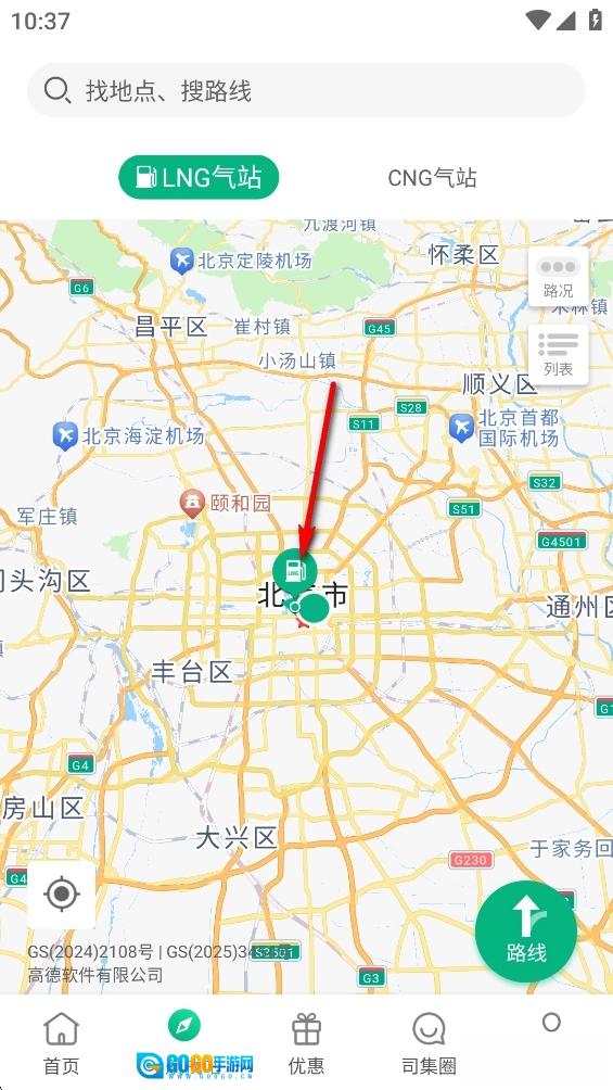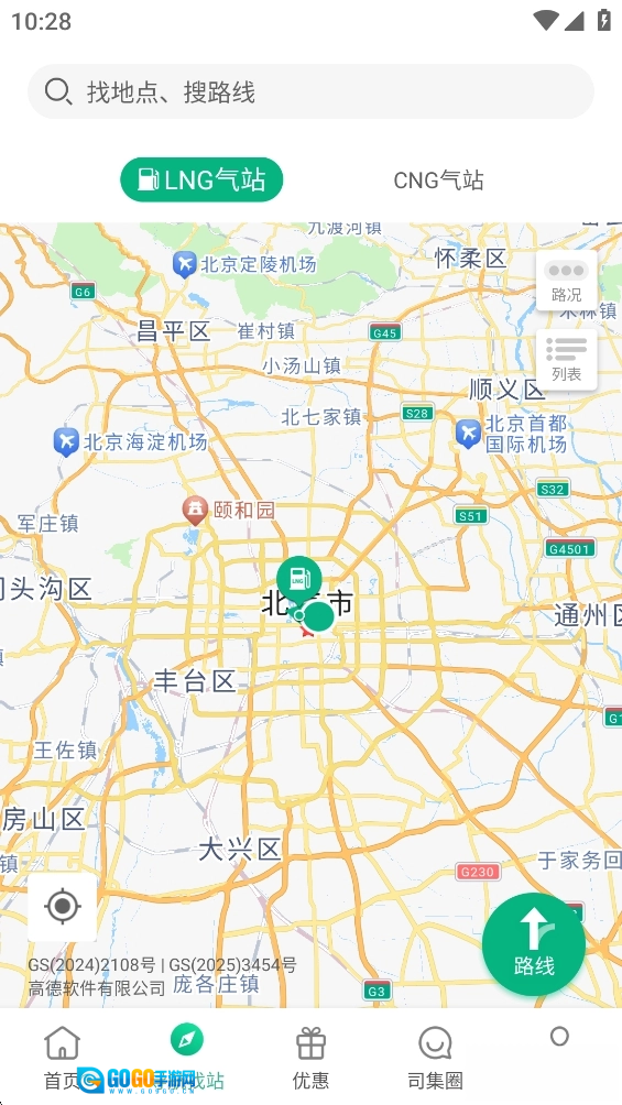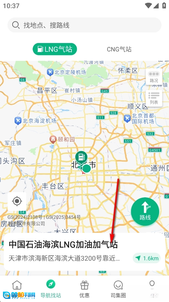 查找周边加气站点,信息准确无误,每一处加注站点均经过线下实地核验。