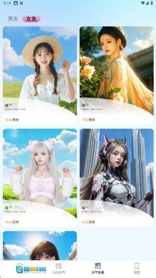 5、天气背景页面提供了不同类型的素材推荐,支持自定义天气查询背景。