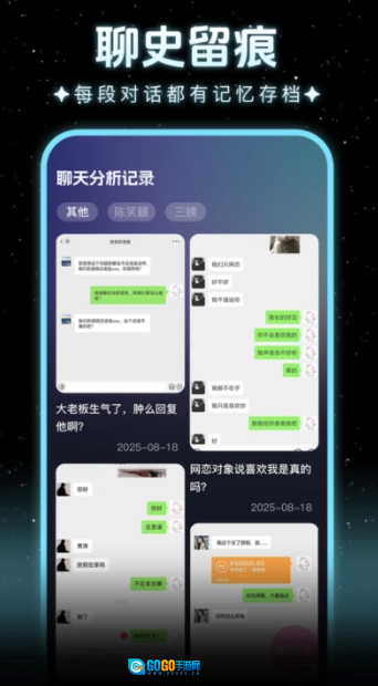 2、聊史留痕功能很实用,每段对话都会被记忆存档,方便用户随时回顾聊天历史,开展社交复盘。
