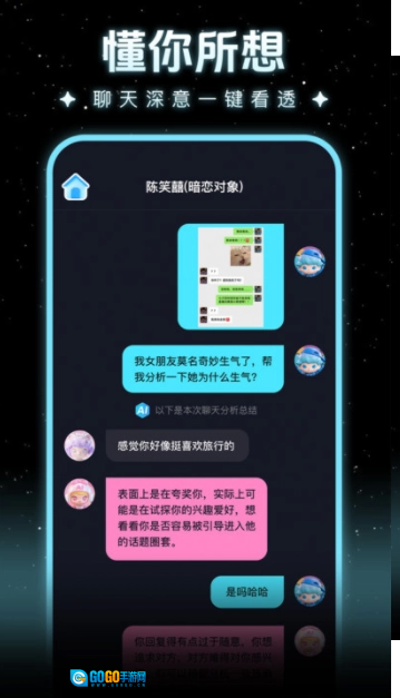 1、结合智能技术与社交分析手段,精准捕捉聊天里的深层信息,助力用户领会彼此想法,洞悉对话背后的深意。