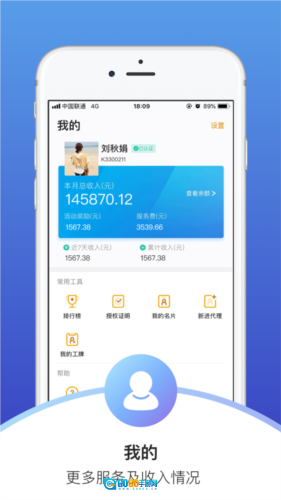 3.每位用户都可在个人中心页面查看自己的个人业绩。