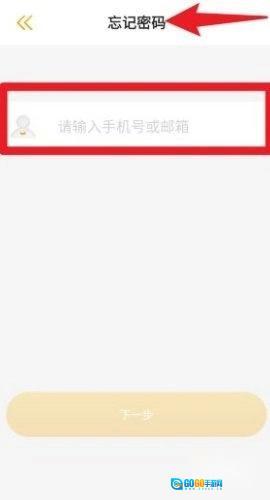 2、当忘记密码时,可在密码找回界面输入已绑定的手机号或电子邮箱,然后点击“下一步”按钮。