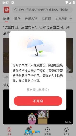 1、进入到平台首页,会提示是否开启青少年模式。