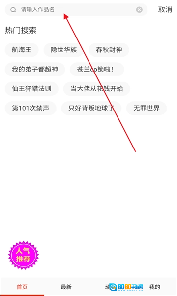 2、输入自己想要观看的漫画名