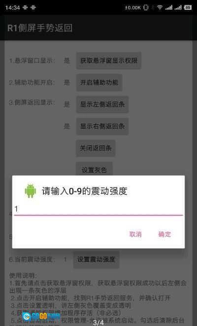 4、支持将返回条设置为透明色,并且可以调节使用过程中的震动强度。
