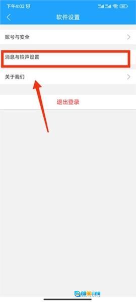 4、在软件设置中,点击消息和铃声进行设置;