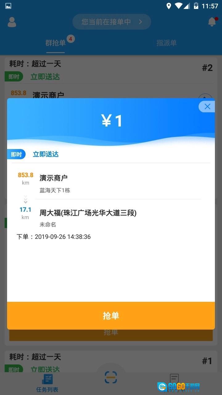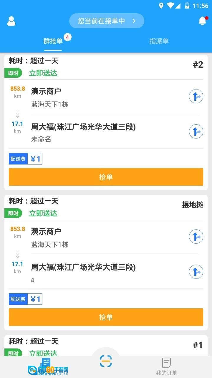 接单方面,快跑者配送端支持在群组内抢单,也能接收定向指派的订单;可以通过扫码(或输入取件码)的方式快速收单,并且具备帮商户代为录入订单的功能。