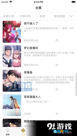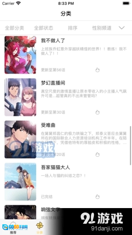 2.漫画分类清晰直观,用户能够依据类型、地区、更新进度等条件开展筛选与排序操作。