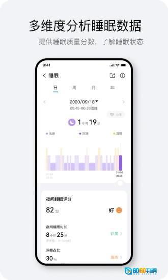3、睡眠情况按日、周、月、年维度记录,用户可查看不同阶段的睡眠质量;
