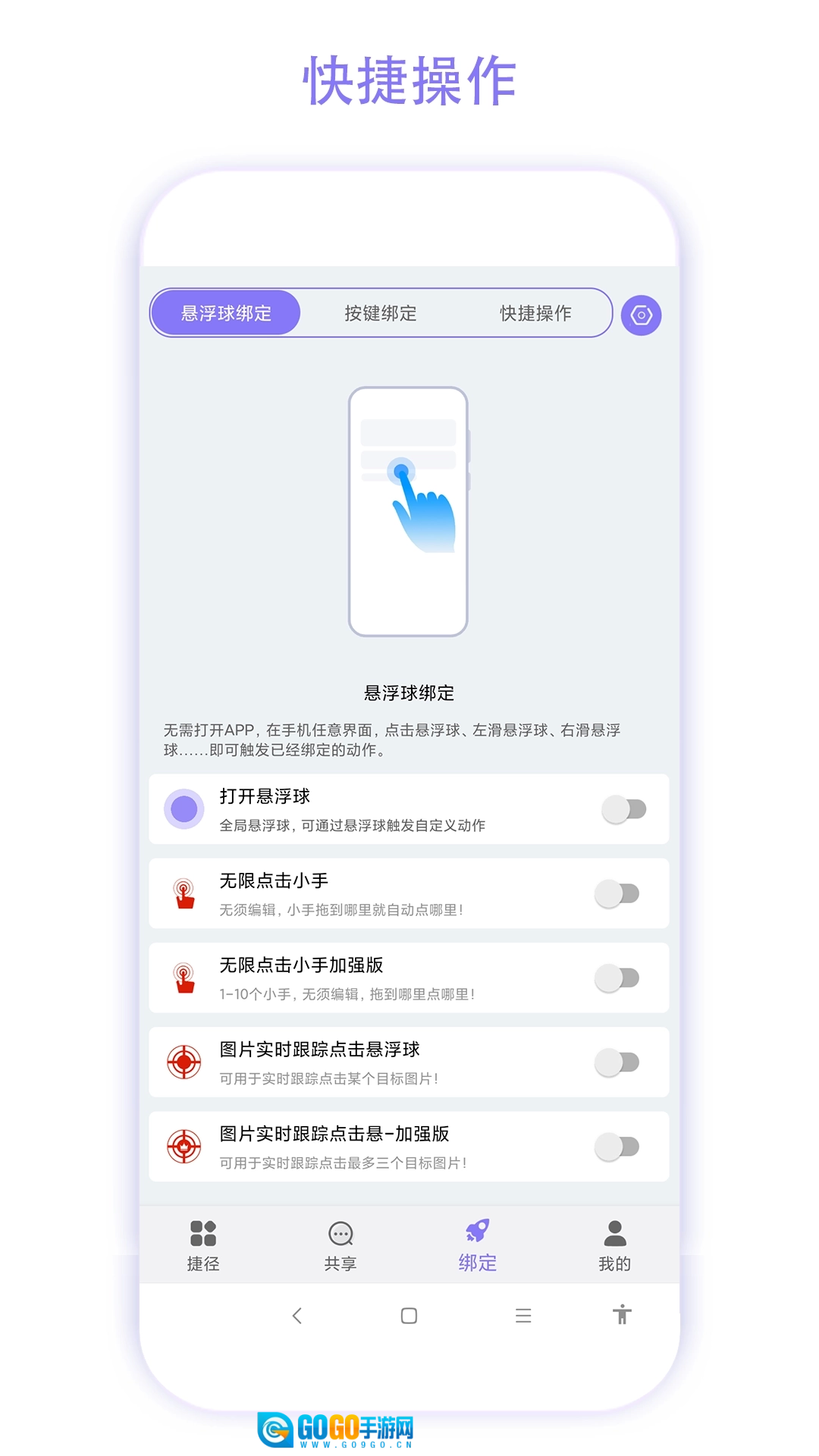 悬浮球系统:支持绑定3个自定义动作,让你能在全局范围内快速调用这些功能。