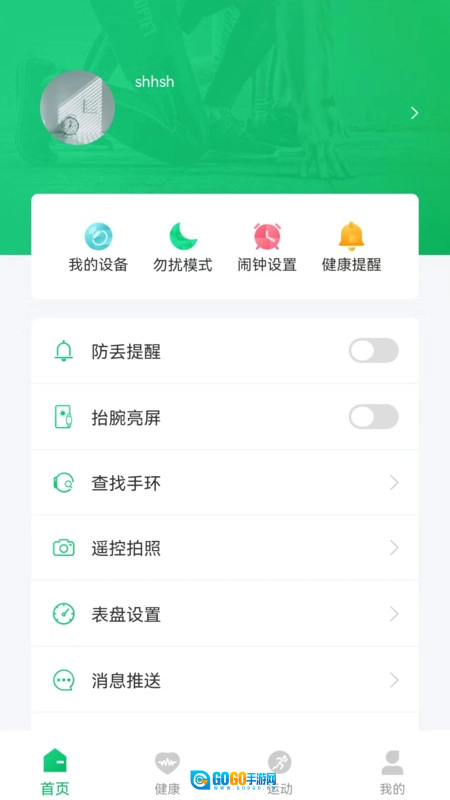 4、时钟、闹钟、防丢、久坐提醒、遥控拍照等功能;