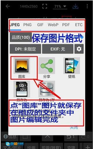 用户能够把图片保存至本地设备,并且支持以JPEG和PNG格式进行保存,还可以将图片分享给朋友。