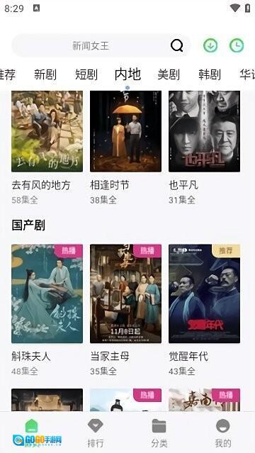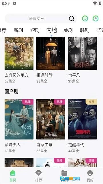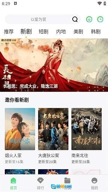 1、启动应用后,您可以在首页通过搜索功能查找影片,也能点击新剧、内地等分类标签来浏览相关内容。