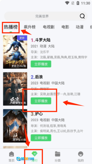3、切换到热播榜单就能看到“斗罗大陆”这类热门剧集,点击立即播放按钮就可以开始观看了。