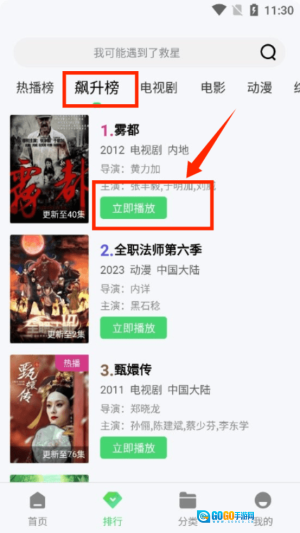 2、进入排行页后选择飙升榜单,即可查看“雾都”这类热度快速攀升的影视作品。