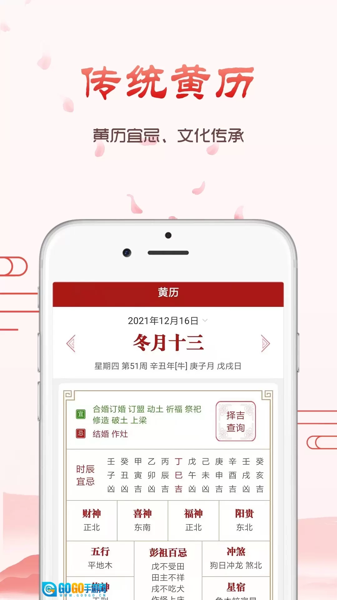 1、融合传统农历与易经民俗文化,呈现详尽的黄历资讯。