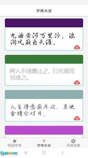 《字体库大全》是一款资源丰富的实用字体软件,海量精美字体供用户自由挑选,无论是手机美化还是设计创作都能轻松应用。软件操作简便却功能强大,不仅支持一键更换字体,还能让用户自定义打造专属风格,让手机界面或设计作品更具独特性。此外,它提供多种风格的字体选择,用户可根据需求随心挑选,同时支持字体大小调整,轻松打造契合手机显示或个人审美的效果。凭借丰富的字体种类、美观的样式和便捷的使用体验,这款软件无疑是提升手机美感与创作体验的理想工具。