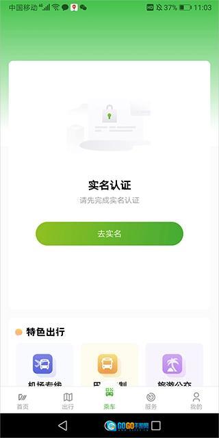2、登录成功之后回到首页,点击如图所示的乘车。