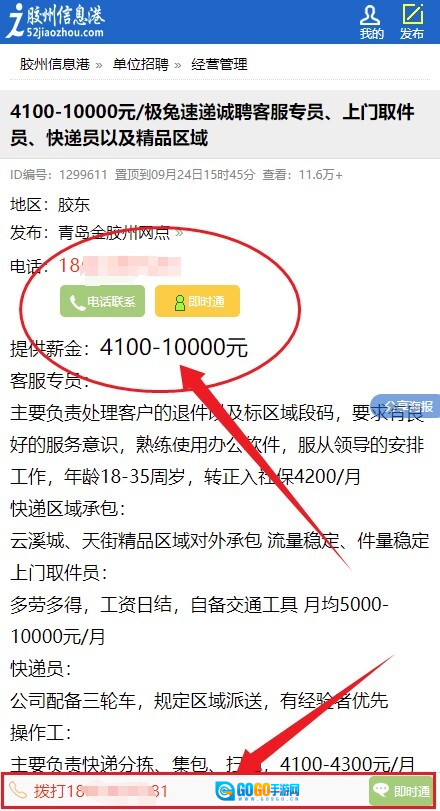 4、随意点开一条招聘信息,就能查看其详细介绍,之后还能直接拨打电话联系招聘方。