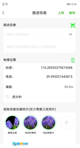 绿途由北京数字绿土科技股份有限公司开发,中国科学院植物研究所提供数据与理论支持,是一款专业的植被分布数据采集软件。它设有普通用户拍照记录模式和专家用户打点记录模式:拍照模式中,用户可借助软件自带的自动定位功能,在当前GPS位置采集图像数据,描述类别后上传至服务端;打点模式下,用户能以软件自动加载的谷歌影像、1:100万植被图等图层为参考,对目视范围内的植被名称进行快速标记并上传。