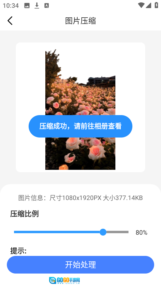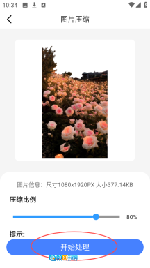 4、选择好压缩比例之后,点击“开始处理”即可。
