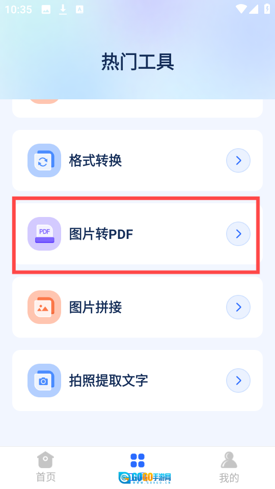 1、打开软件后,找到“工具”选项,点击其中的“图片转pdf”功能。