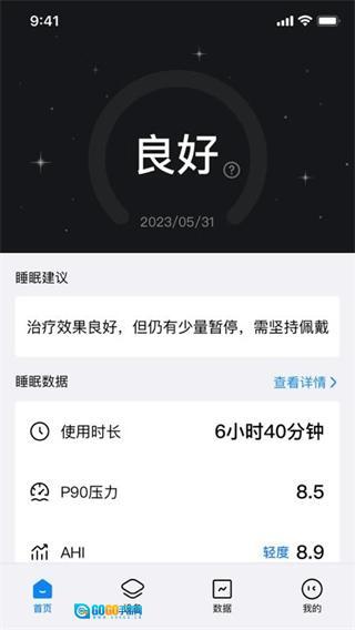 3. 在首页即可看到睡眠建议、睡眠数据等功能;
