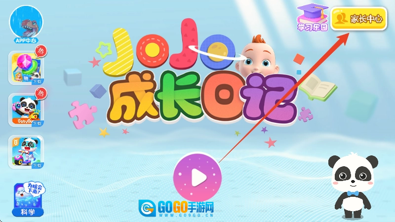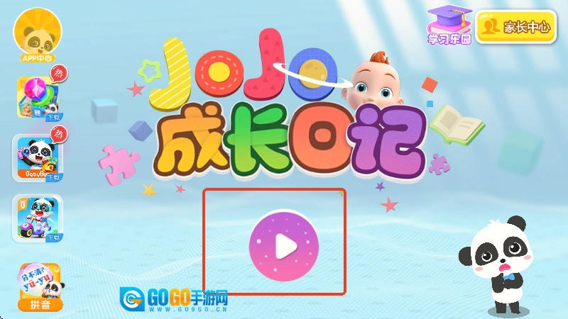 1、打开JoJo成长日记,点击中间的播放图标